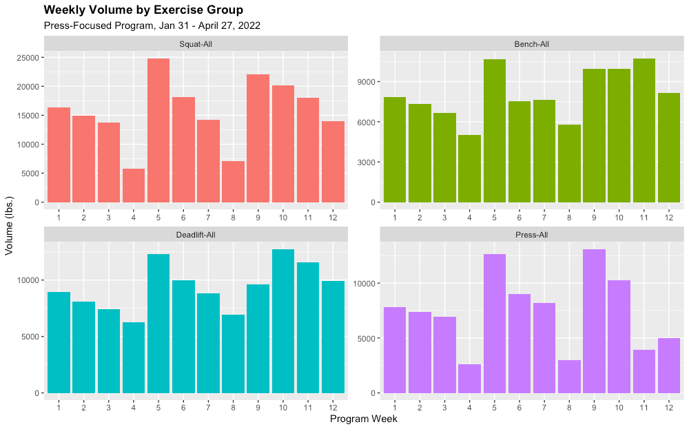 Top sets are the most gratifying charts because that's where we see PRs. But volume analysis becomes important when a lifter is trying to understand why a training block worked (or didn't). Unfortunately, good volume charts are hard to come by.